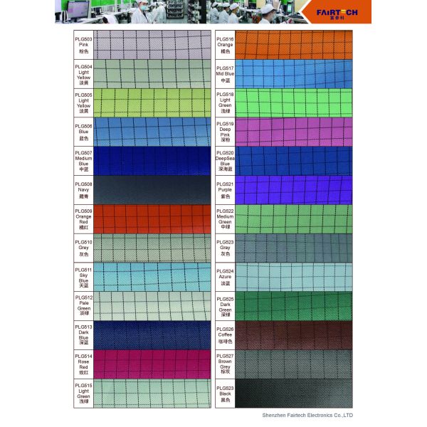 Fairtech’s Anti Static ESD Fabrics (Model PL001) are electrically conductive fabrics that are designed to protect electronics from static electricity. The fabric is lightweight, breathable and comfortable. It is certified by CE and ISO standards and is available in a range of colors.